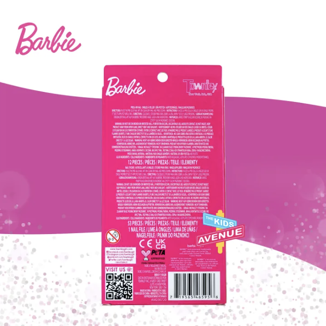 The Barbie Nail Set with 53 Pieces Nail Stickers is perfect for kids 6+ to get creative! This set includes 12 self-adhesive press-on nails, 53 colorful nail stickers, and a nail file. It encourages fine motor skills, self-expression, and confidence with fun, Barbie-inspired designs.